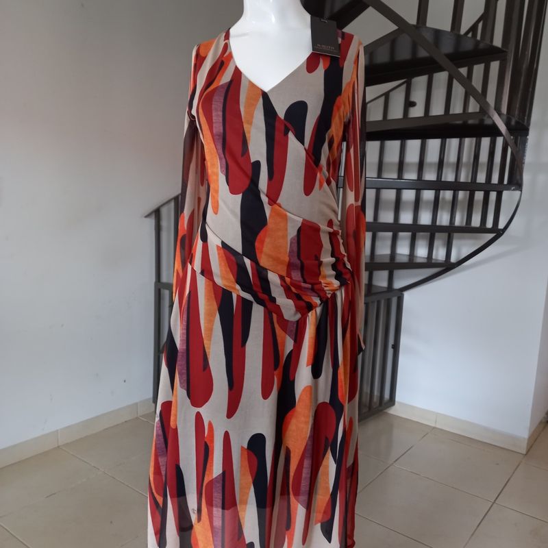 Vestido de Festa Midi de Tule Estampado Manga Longa Il cito Very well made.