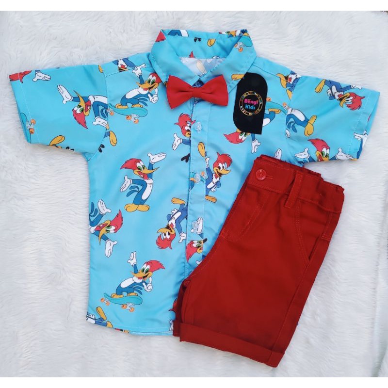 Kit Infantil Pica Pau Camiseta Algod o E Bermuda Unissex Very well made.