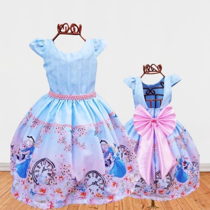 Vestido festa infantil tema Alice no Pa s das Maravilhas luxuoso Very well made.