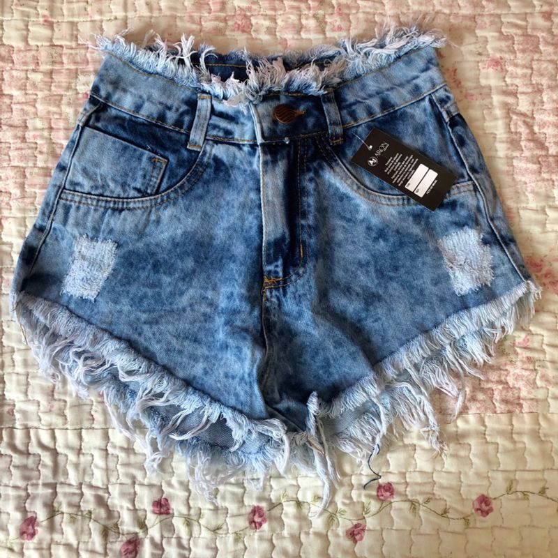 shorts jeans com elastano curto desfiado moda verao 2023 sexy e Very well made.