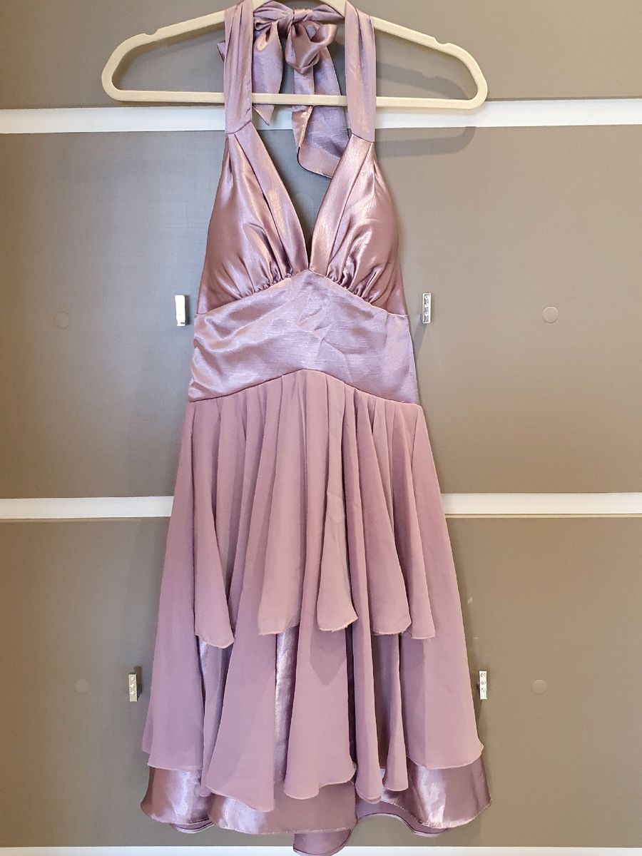 Vestido de Festa Frente nica em Cetim e Crepe Na Cor Rosa Antigo Vestido de Festa Feminino Padrina Usado 40890968 enjoei Very well made.