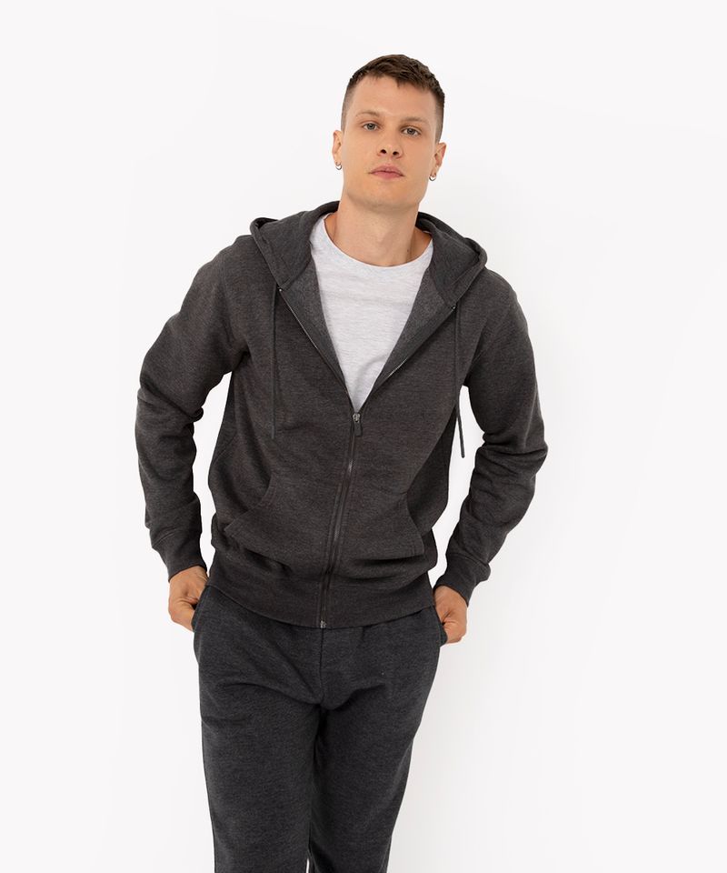 Blus o de Moletom Masculino B sico com Capuz Cinza Mescla Escuro Very well made.
