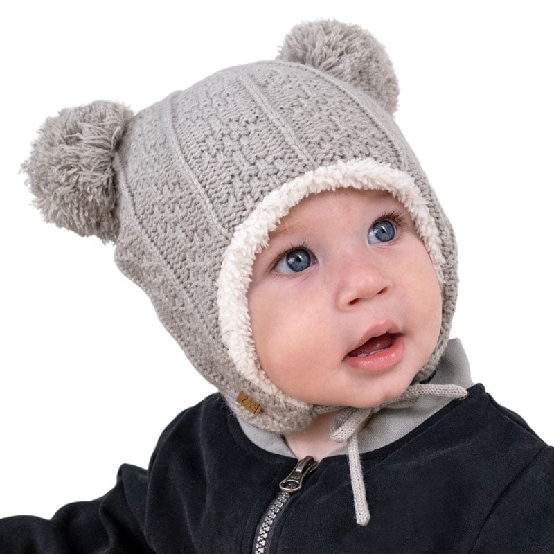 Kids Knit Winter Earflap Hats Grey Bear Jan Jul Very well made.