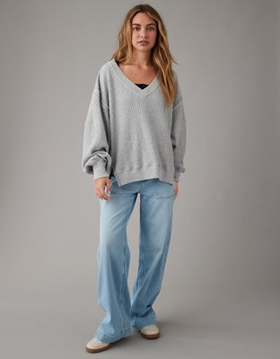AE Oversized Big Hug Waffle V Neck Sweatshirt Very well made.