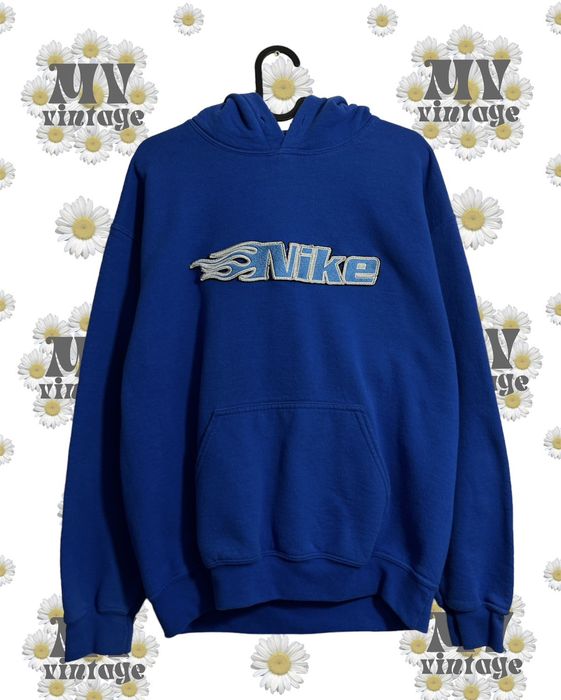 Nike Nike 00s Vintage Big Flaming Logo Embroidery Custom Hoodie Very well made.