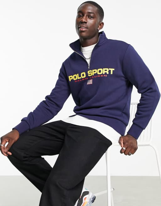 Polo Ralph Lauren Sport capsule retro flag logo half zip sweatshirt in navy Very well made.