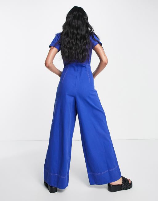 ASOS DESIGN twill collar jumpsuit with wide leg in blue Very well made.