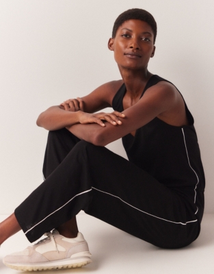 Black sleeveless jumpsuit with white side stripes Lindex Estonia Very well made.