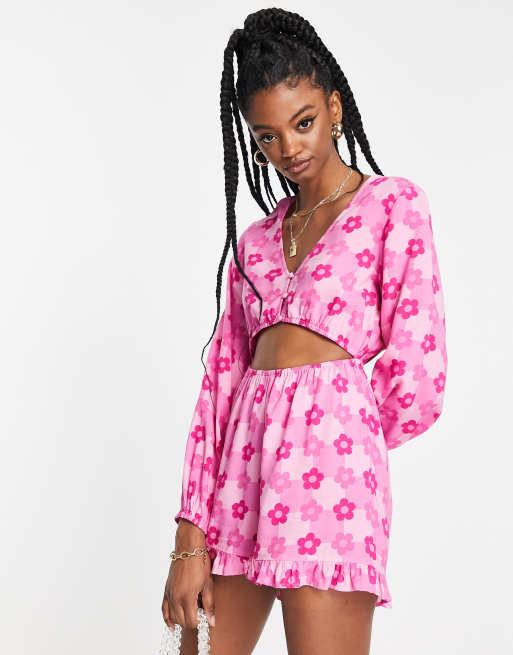 Miss Selfridge long sleeve cut out playsuit in heart checkerboard Very well made.