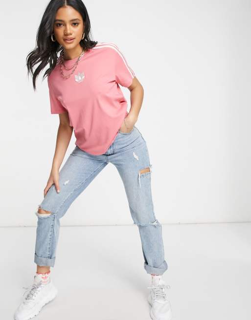 adidas Originals adicolour 3D logo three stripe t shirt in hazy rose Very well made.
