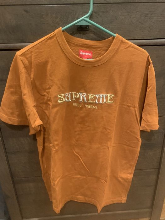 Supreme Supreme Nouveau Logo Tee Gold Grailed Very well made.