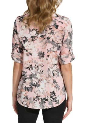 Calvin Klein Women s Floral Print Top Black Size 0X Floral print Very well made.
