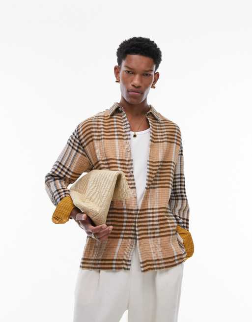 Topman long sleeve relaxed textured plaid shirt in orange and black plaid Very well made.