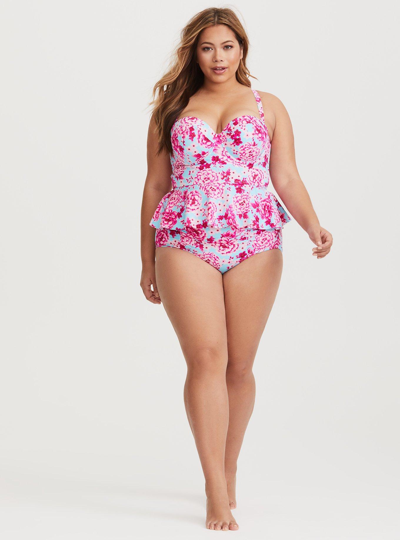 New Torrid Peplum Push Up Teal Tankini Swim Top Size 3X Adj. Straps Underwire Very well made.
