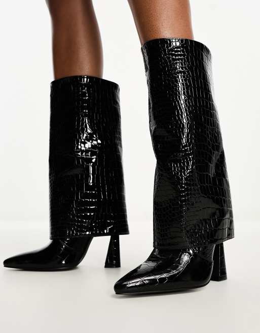 Simmi London Rayan foldover heeled knee boots in black patent croc Very well made.