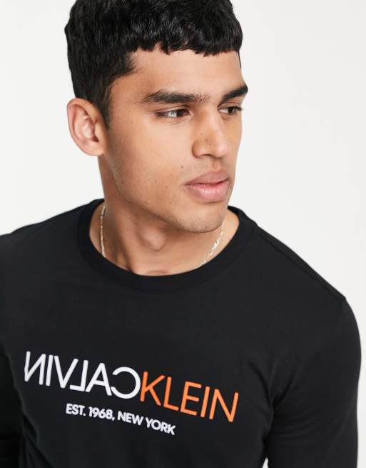 Calvin Klein text reverse logo long sleeve t shirt in black Very well made.